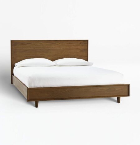 Minimalist platform bed with a sleek low-profile design, perfect for modern interiors that value simplicity, functionality, and clutter-free aesthetics.