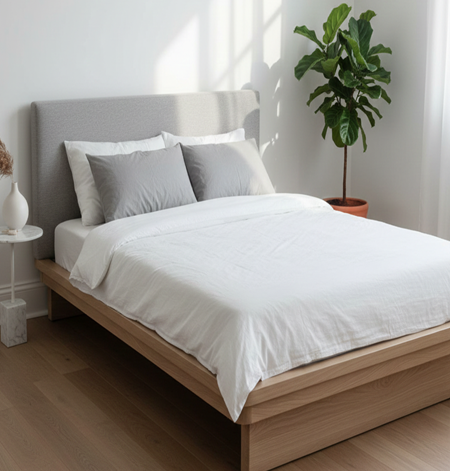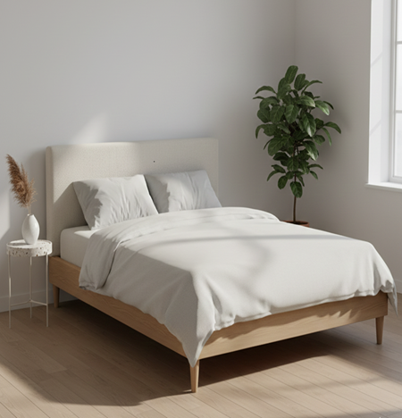Strong and reliable wooden bed crafted with a simple design, offering everyday comfort, stability, and durability for long-term residential use.